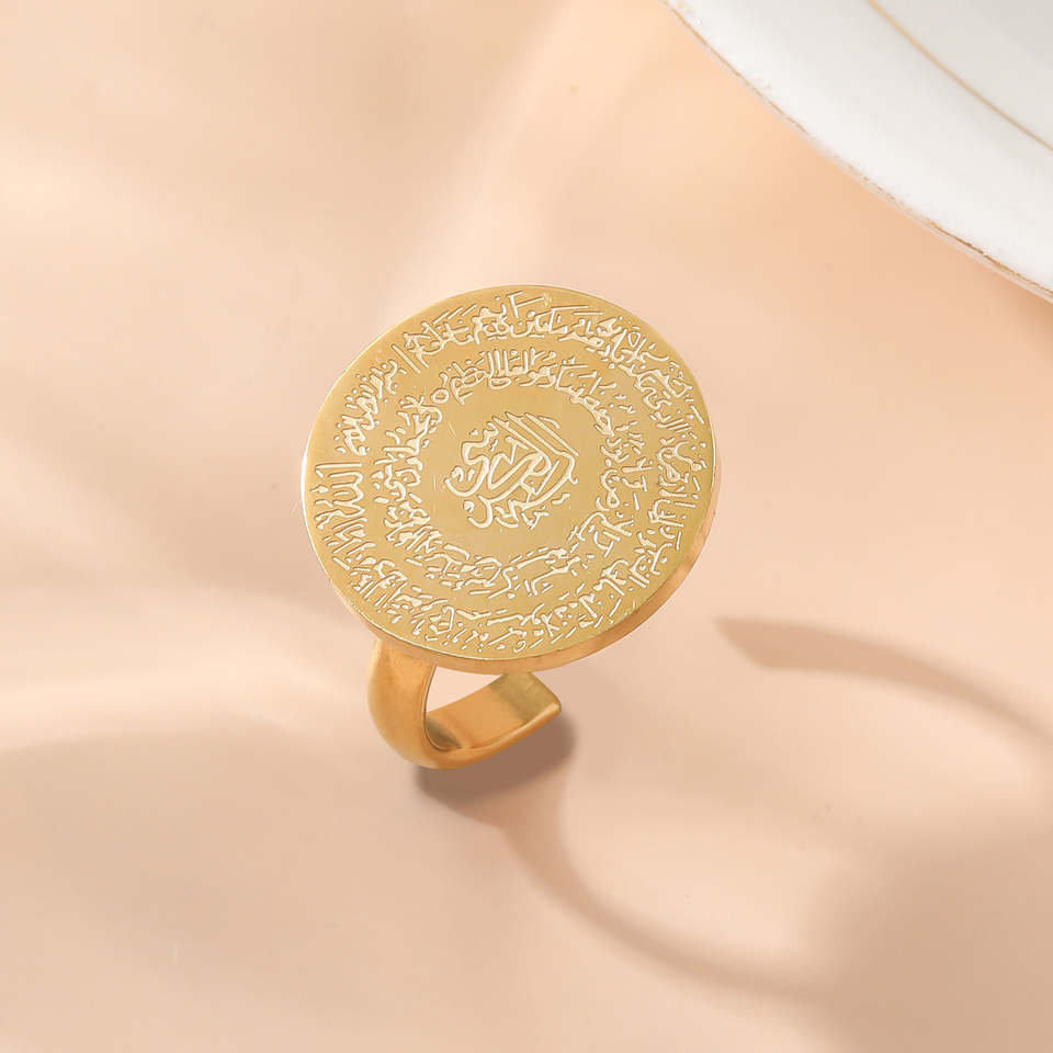 แหวนอายะฮ์อัลกุรซีย์สุดพิเศษ 4 คุล มุสลิม อิสลาม อัลเลาะห์ กำไลข้อมือ อัลกุรอาน คำอธิษฐาน ทองคำ เครื่องประดับศาสนาอิสลาม ภาษาอาหรับ กันน้ำ สแตนเลสสตีล