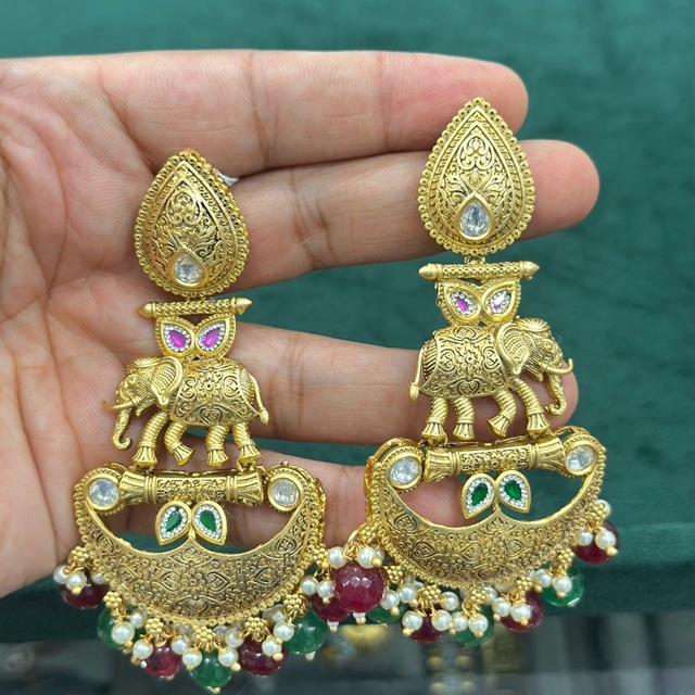 ต่างหูทองคำคุณภาพดีเยี่ยม ประดับด้วยเพชร Kundan แบบ Polki Rajwadi สำหรับผู้หญิงและเด็กผู้หญิง เหมาะสำหรับงานแต่งงานและงานปาร์ตี้