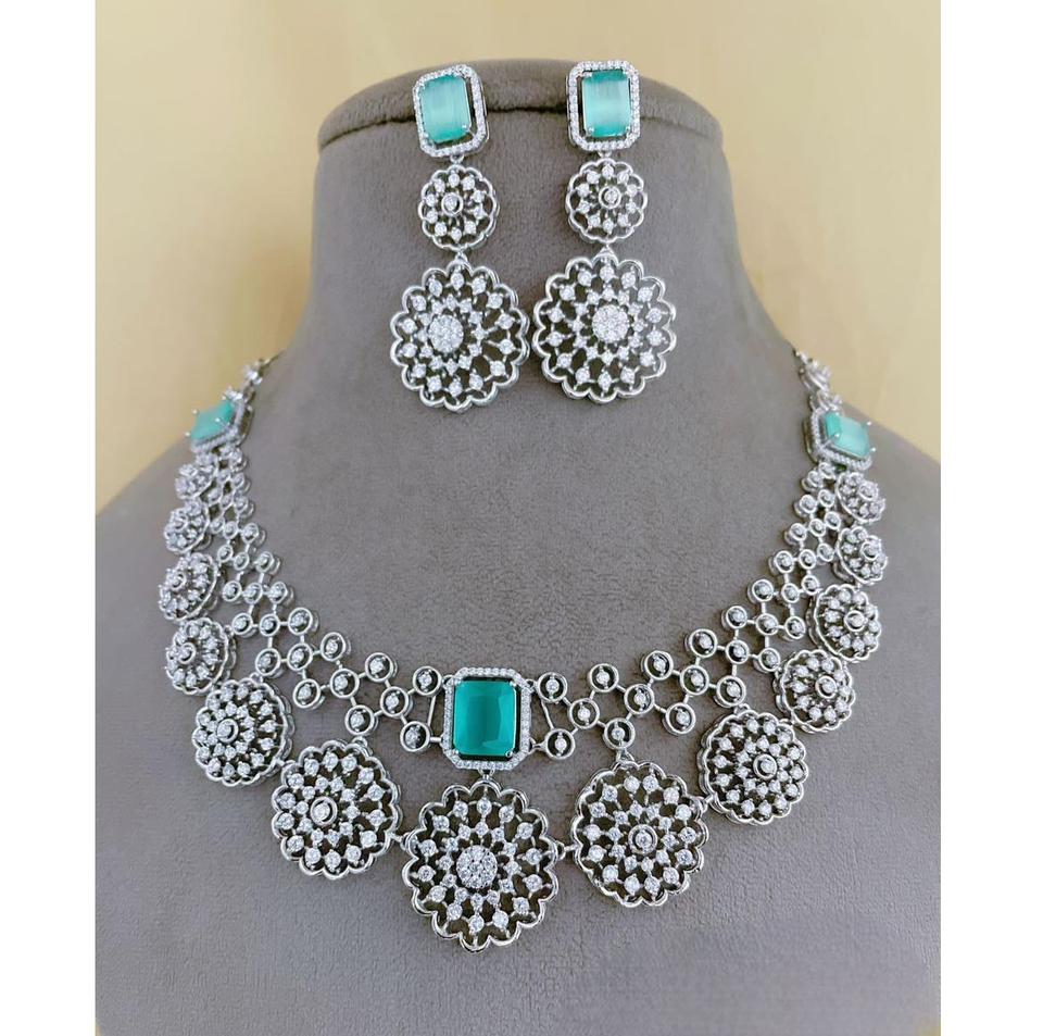 ชุดสร้อยคอและต่างหูดีไซน์เก๋ ประดับเพชรซิคอนชุบเงิน คุณภาพเยี่ยม สำหรับงานแต่งงานและงานปาร์ตี้ของผู้หญิง