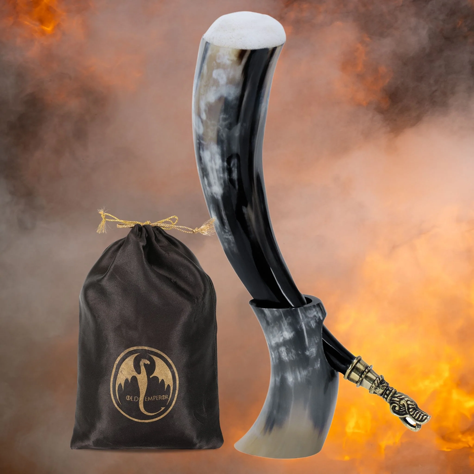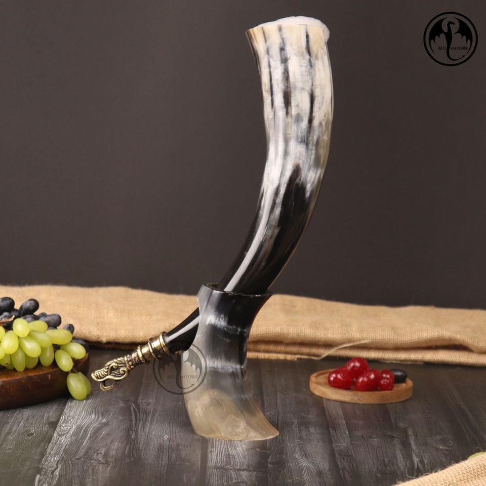 แก้วดื่มเบียร์ไวกิ้งพร้อมขาตั้งเหล็กปลอดภัยสำหรับอาหารของแท้แก้วดื่มเบียร์แบบนอร์สไม่รั่ว