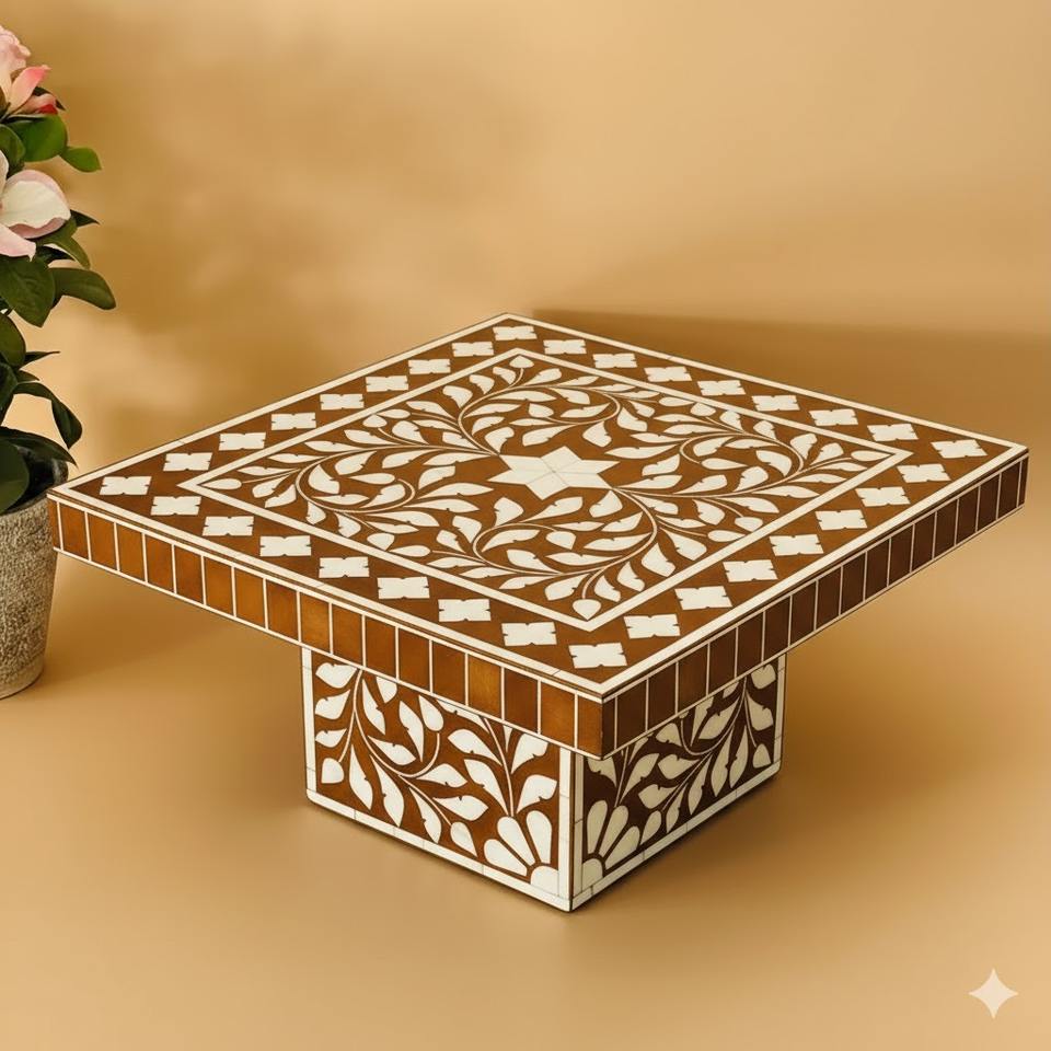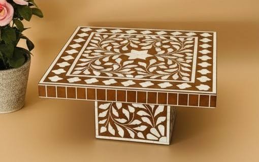 โต๊ะฝังกระดูกแบบพิเศษเป็นมิตรกับสิ่งแวดล้อมโต๊ะวางเค้กลายดอกไม้ทำด้วยมือสำหรับตกแต่งห้องนั่งเล่น