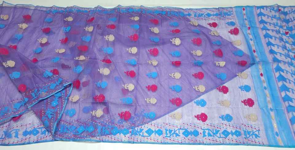 ผ้า jamdani สีเขียวทองสีแดงจากบังคลาเทศส่งออกสำหรับผู้หญิง