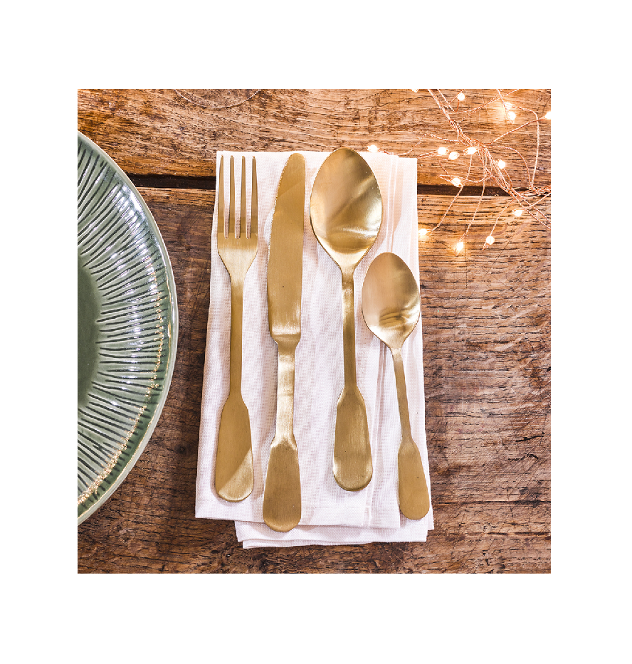 ชุดช้อนส้อมสีทองทองเหลืองดีไซน์สุดพิเศษสำหรับเครื่องครัวช้อนรับประทานอาหารทำจากมิเรอร์