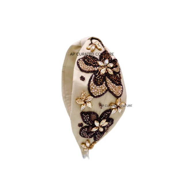 ผ้าโพกหัวปักลูกปัดสำหรับผู้หญิงเครื่องประดับผมแฟชั่นงานแฮนด์เมดสไตล์อินเทรนด์ดีไซน์พิเศษ