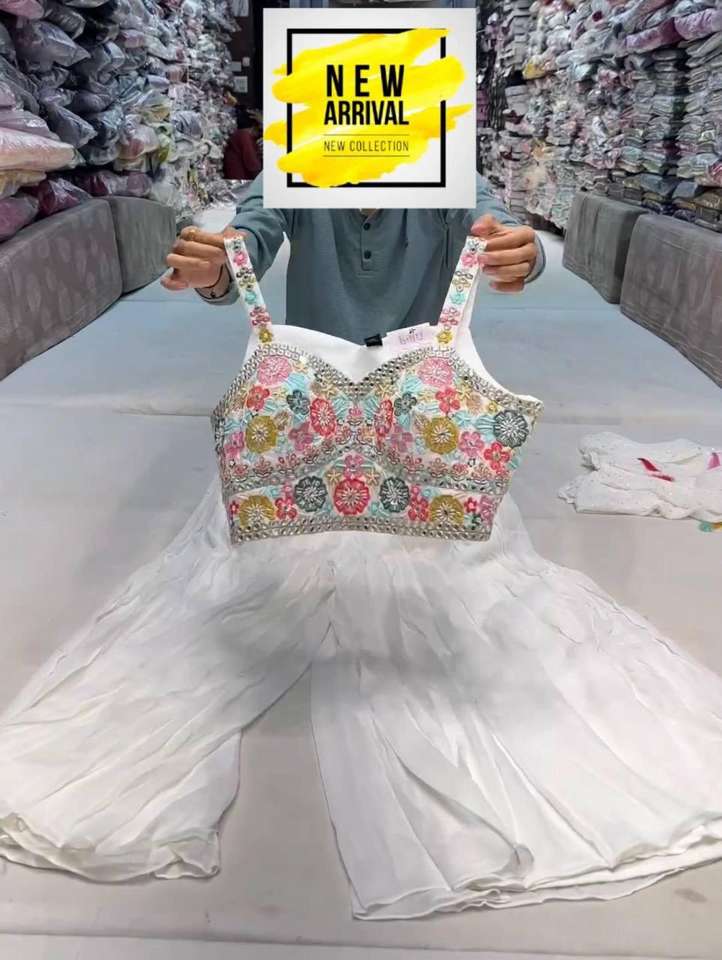 ผ้าไหม Chinon ลำดับทำงาน choli Koti และ Palazzo