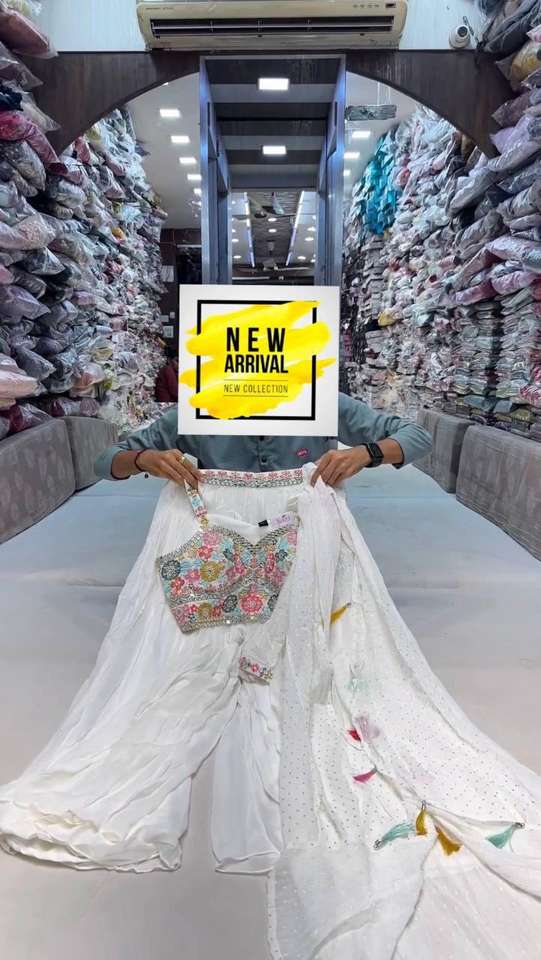 ชื่อผลิตภัณฑ์:ผ้าไหม Chinon ลำดับทำงาน choli Koti และ Palazzo