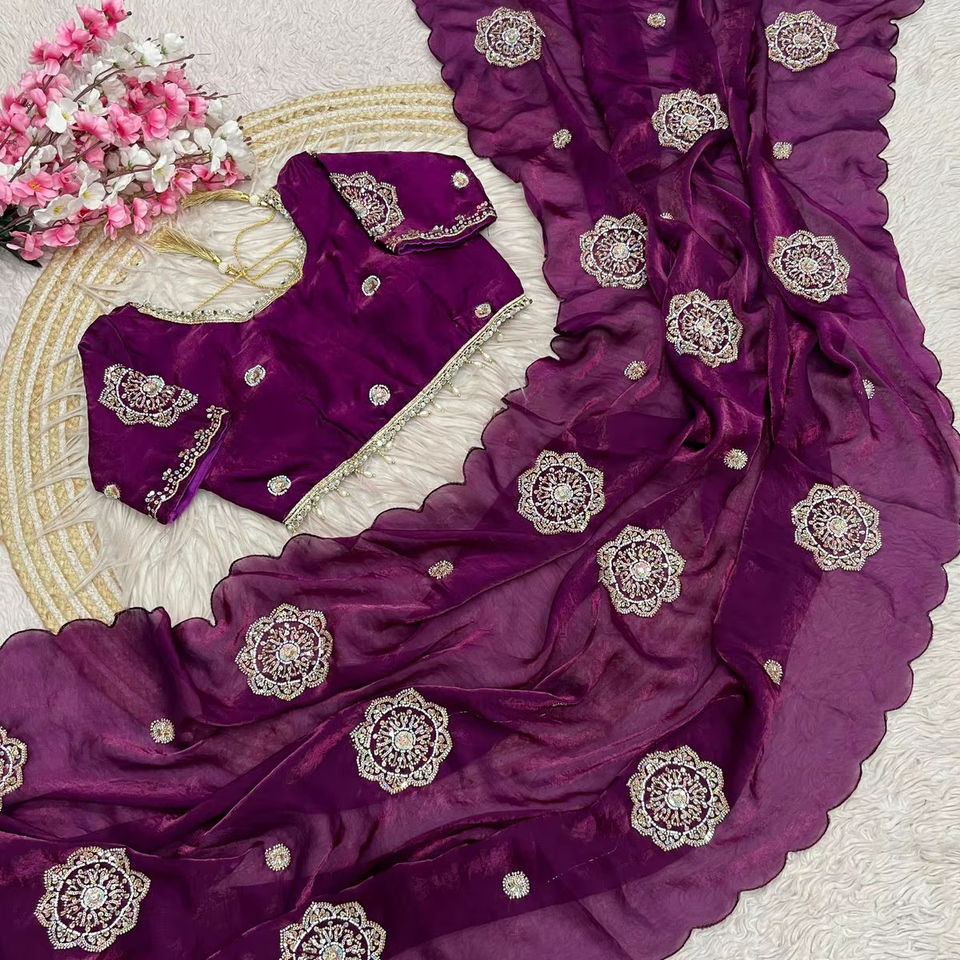 ผ้าไหมซารีแบรนด์ Fendy ดีไซน์หรูหรา พร้อมเสื้อคลุมสุดสง่างาม ทันสมัย มีสไตล์ โดดเด่น สะท้อนวัฒนธรรมอินเดีย ล่าสุด ทันสมัย เหมาะสำหรับงานปาร์ตี้ สำหรับผู้หญิง