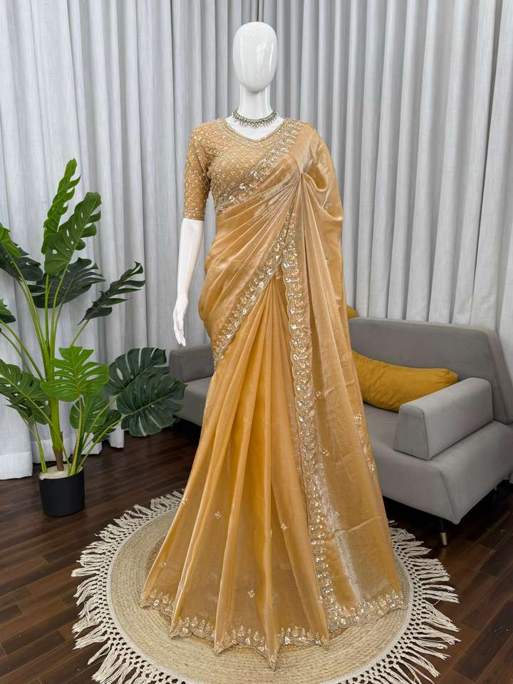 ผ้าไหมซารีแบรนด์ Fendy ดีไซน์หรูหรา พร้อมเสื้อคลุมสุดสง่างาม ทันสมัย มีสไตล์ โดดเด่น สะท้อนวัฒนธรรมอินเดีย ล่าสุด ทันสมัย เหมาะสำหรับงานปาร์ตี้ สำหรับผู้หญิง