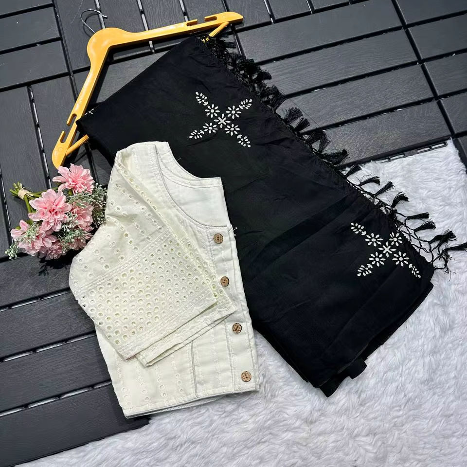 ผ้าซิ่นมัสลินผ้าฝ้ายผสมไหมดีไซน์หรูหรา พร้อมเสื้อคลุมสวยเก๋ ทันสมัย สไตล์อินเดีย สำหรับงานปาร์ตี้ เหมาะสำหรับผู้หญิงที่ต้องการความเรียบร้อย