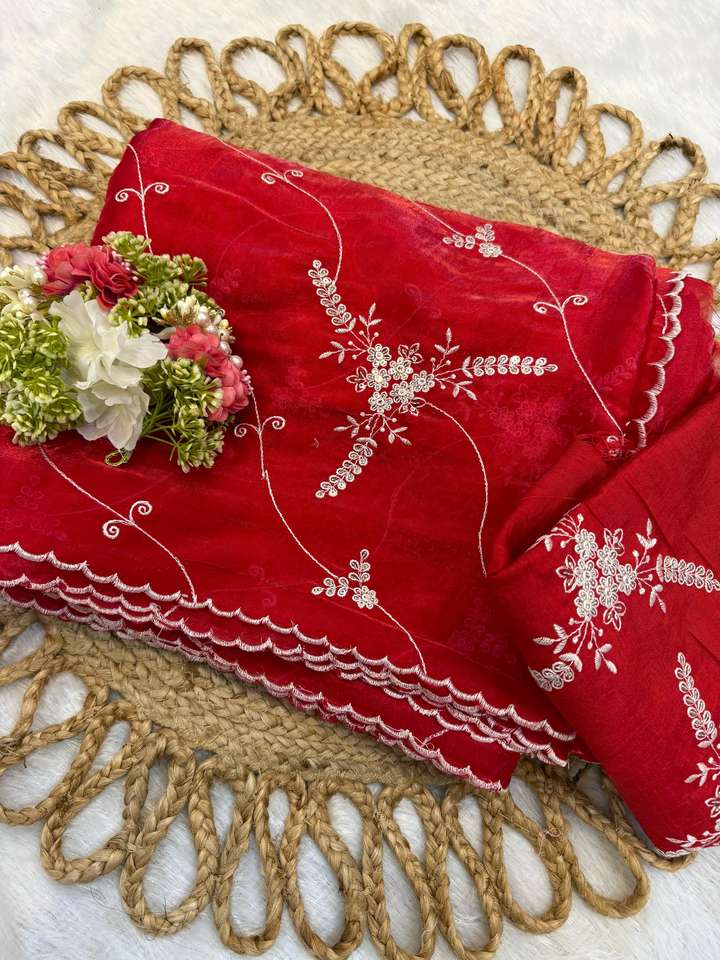 เสื้อส่าหรีดีไซน์เนอร์สุดพิเศษพร้อมเสื้อส่าหรีสง่างามทันสมัยทันสมัยทันสมัยแนวพื้นเมืองอินเดียชุดปาร์ตี้บูติกสีแดง