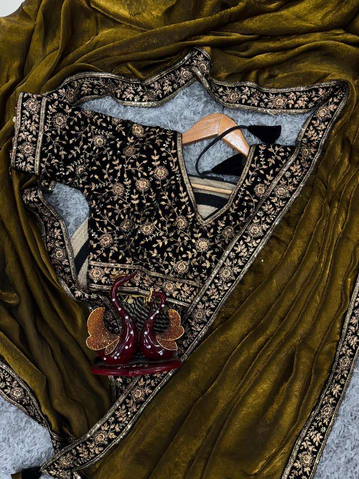ผ้าไหมส่าหรีดีไซน์พิเศษ พร้อมเสื้อคลุมหรูหรา ทันสมัย โดดเด่น แบบอินเดีย ล่าสุด ทันเทรนด์ เรียบร้อย คลาสสิก เหมาะสำหรับงานปาร์ตี้ สำหรับผู้หญิง