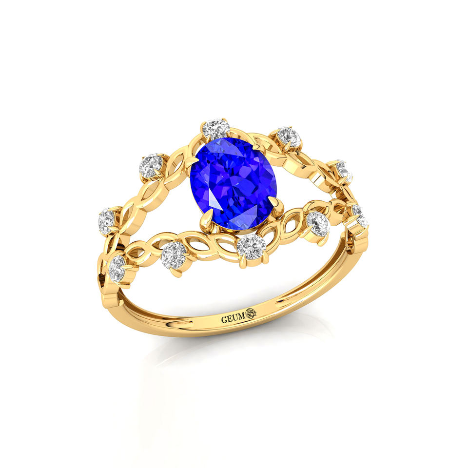 แหวนพลอยแทนซาไนต์ทรงรีจากธรรมชาติดีไซน์สุดพิเศษทองคำบริสุทธิ์18K ประดับเพชรธรรมชาติสำหรับงานแต่งงานแบบคลาสสิก