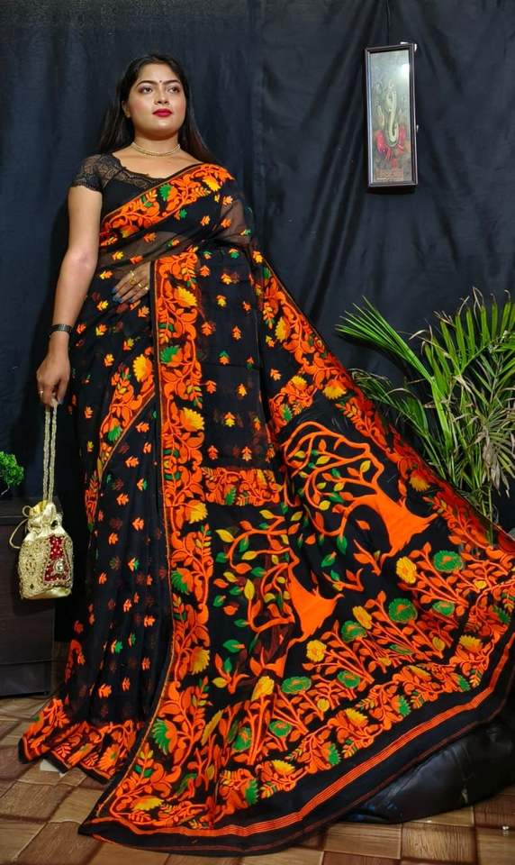 Dhakai Jamdani Saree,เครื่องแต่งกายวันแต่งงานออกแบบพิเศษที่น่าดึงดูดสำหรับงานปาร์ตี้งานหัตถกรรมผ้าคอตตอนจากบังกลาเทศ