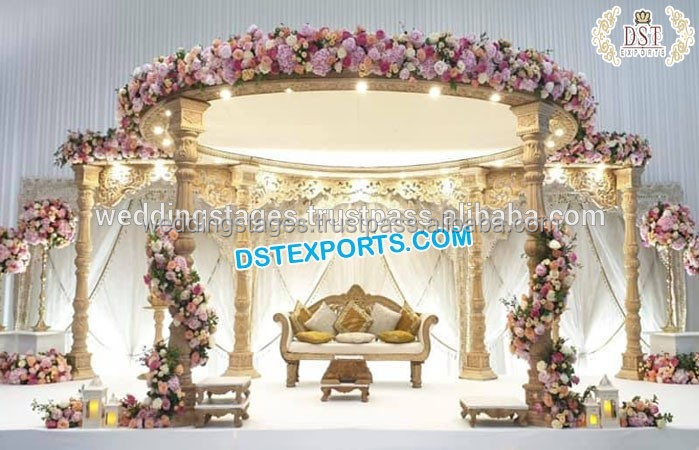 ชุดตกแต่งมณฑปงานแต่งงานแบบเสาคู่สุดหรู แกะสลักอย่างสวยงาม มณฑปอินเดียแบบเสาคู่ สไตล์อินเดียใต้ มณฑปงานแต่งงานแบบ FRP สไตล์อังกฤษ