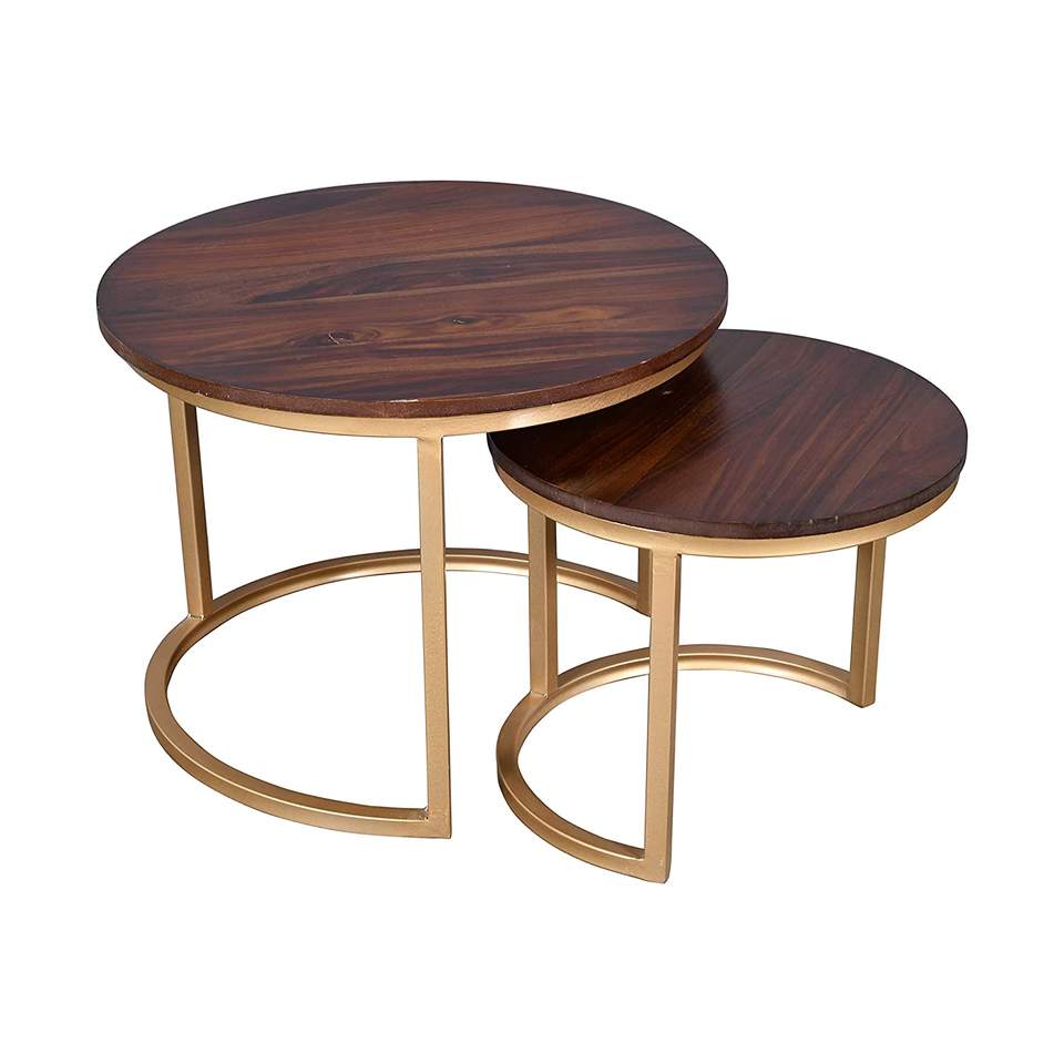 โต๊ะกาแฟสองชั้นสุดพิเศษพร้อมท็อปไม้และกระจกโต๊ะวางกลางโต๊ะทำจากโลหะมีสไตล์
