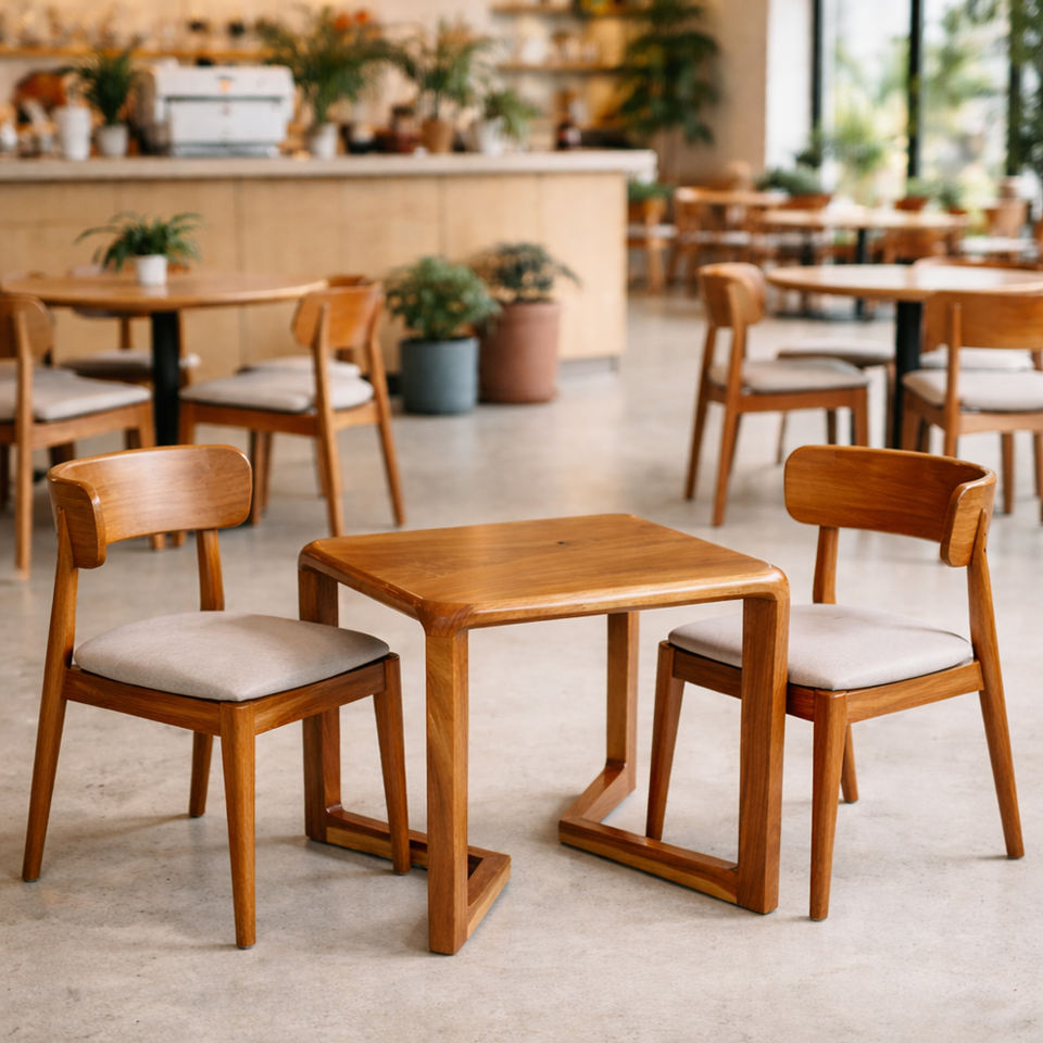 เก้าอี้คาเฟ่ทรงสี่เหลี่ยมไม้สักคุณภาพสูง ดีไซน์ขาเก้าอี้แบบศิลปะ เหมาะสำหรับใช้ในบ้าน บาร์ ร้านอาหาร โรงแรม อพาร์ทเมนท์