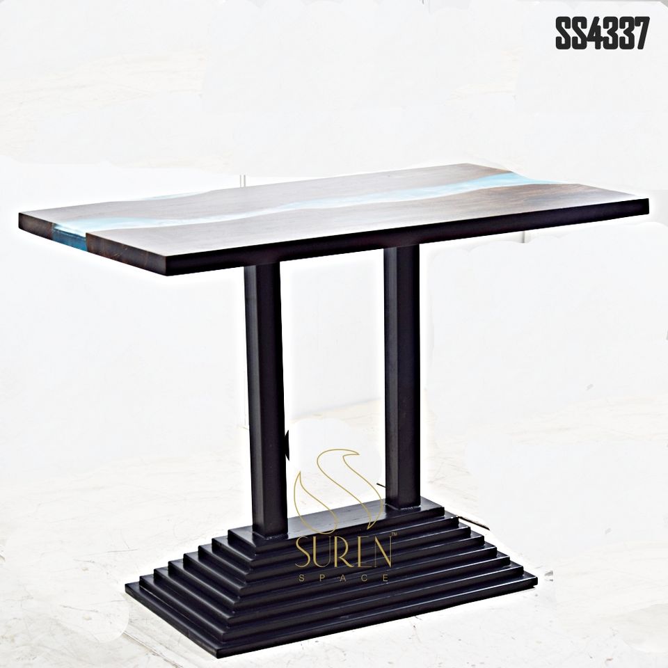 โต๊ะบาร์ยาวแบบอีพ็อกซี่ที่ดูดีมีระดับเหล็กไม้สำหรับตกแต่งในอุตสาหกรรมโรงแรมและห้างสรรพสินค้า