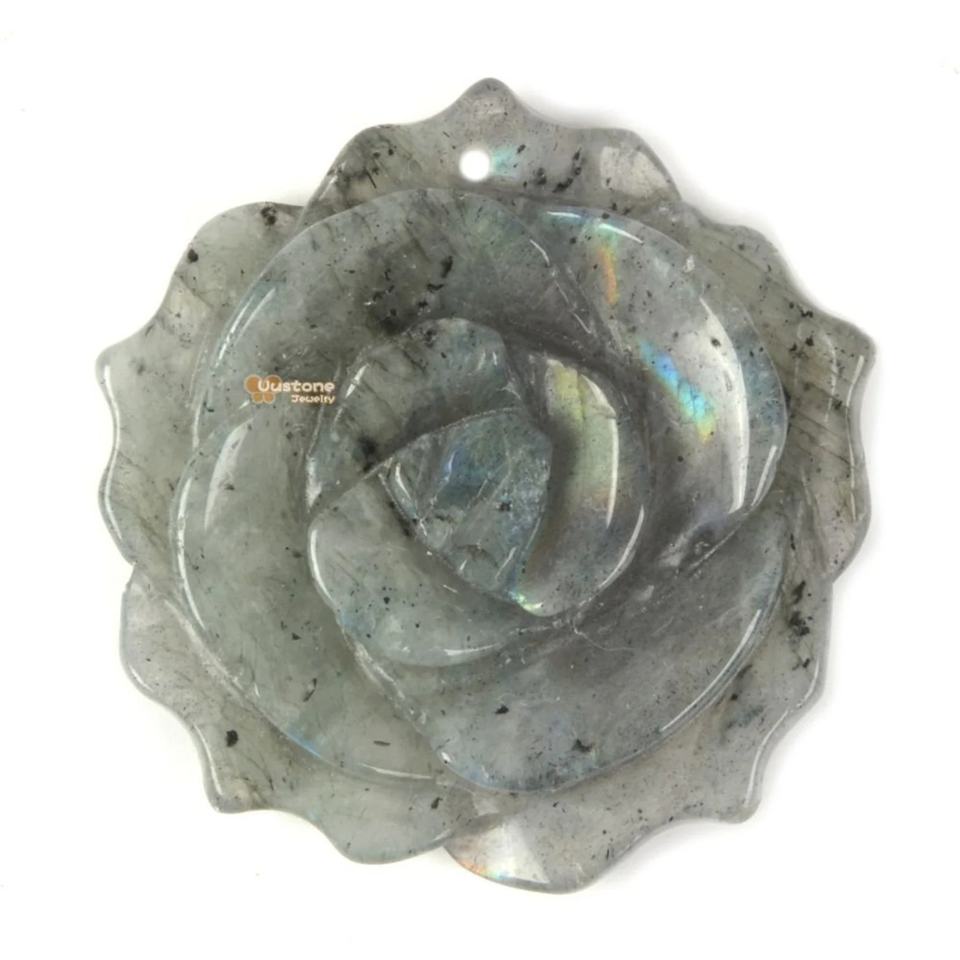 จี้แกะสลักลาบราดอไรต์สังเคราะห์จาก Flower Cut Lab ของแท้ รับรองโดยบุคคลที่สาม สำหรับทำเครื่องประดับ ราคาขายส่ง