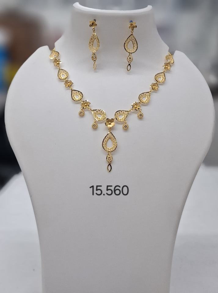 ชุดสร้อยคอพร้อมจี้รูปหยดน้ำสีทองสุดพิเศษ ประดับด้วยลายดอกไม้และต่างหูแบบเข้าชุด สำหรับเครื่องประดับในโอกาสพิเศษสำหรับผู้หญิง