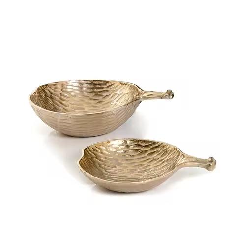 ชุดชามตกแต่งโลหะสีทองสุดพิเศษพร้อมรายละเอียดขอบสวยงามเหมาะสำหรับตกแต่งบ้านที่หรูหราและมีศิลปะ