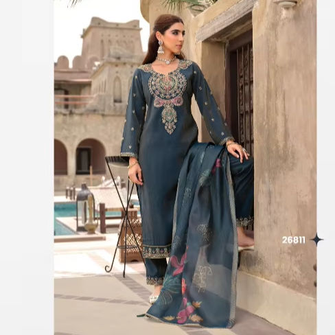 Exclusive Handcrafted Simmer Silk Fabric 3-Piece Modern Kurti Set Work & Fancy Lace with Cotton Lining for Parties & Diwali