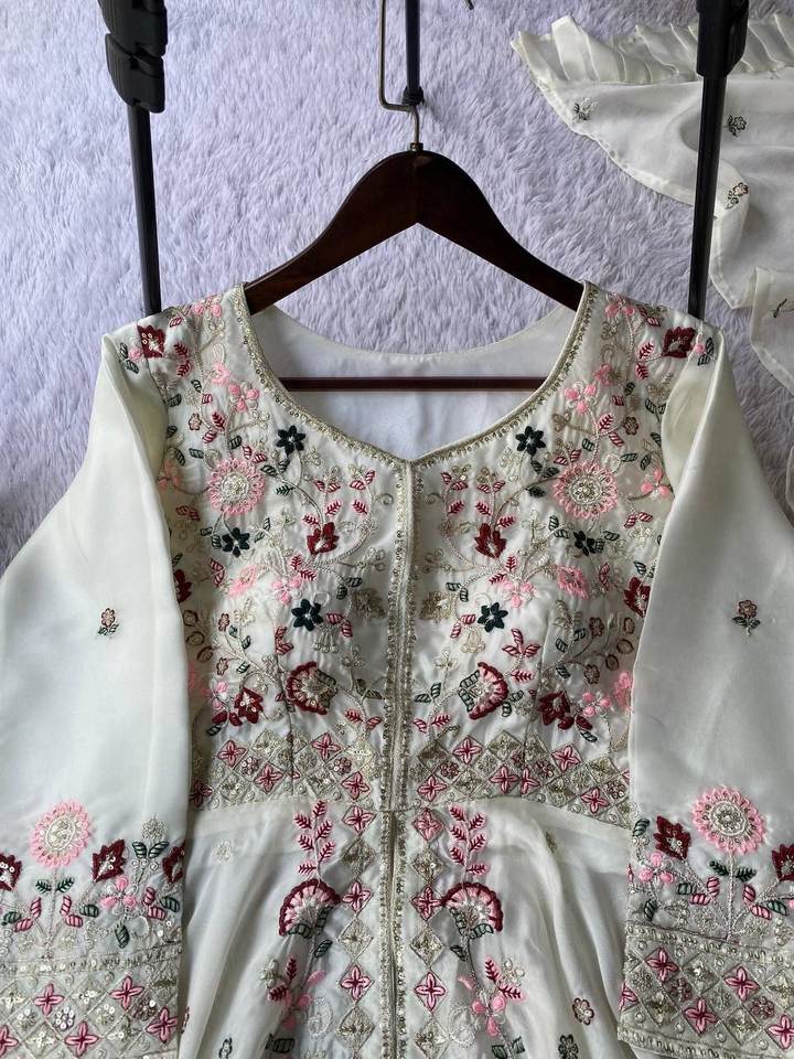 ชุดงานเลี้ยงสุดหรู ดีไซน์เนอร์ออกแบบพิเศษ เสื้อปักลายรังโกลีผ้าไหมพร้อมกางเกงผ้าไหมรังโกลีปักลาย พร้อมผ้าคลุมไหล่ปักลาย