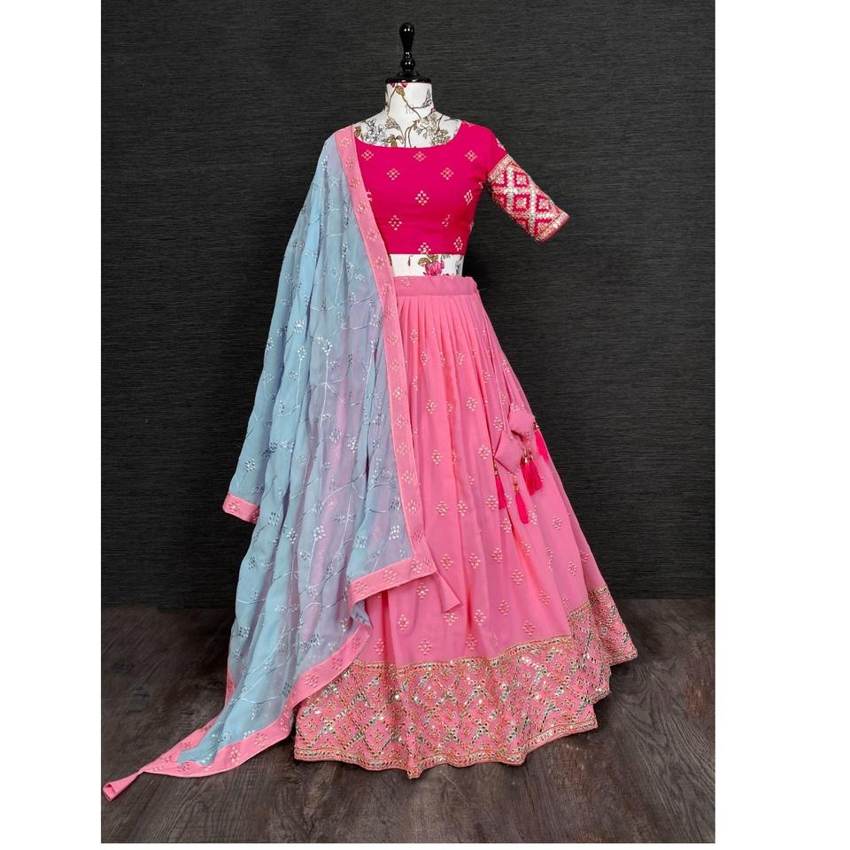 Exclusive Heavy Embroidered Georgette Lehenga Choli Weddings Parties Handmade Ethnic Saree Tussle Belt Mirror Work Bridal Saree