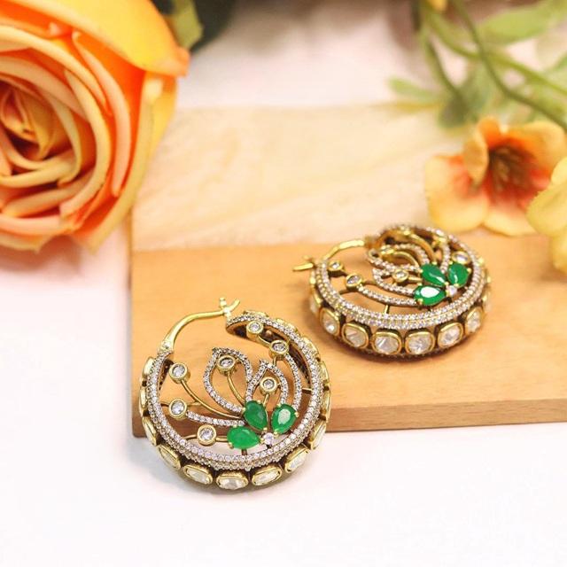 Exclusive High Quality Gold Finish Statement Moissanite Stones Look Earrings Wedding Party Wear Collections For Women And Girls