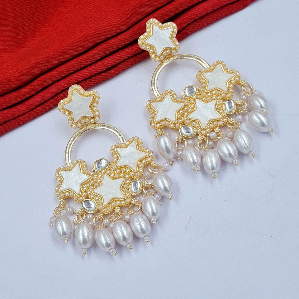 ต่างหู Kundan สุดพิเศษต่างหูอัลลอยสีขาว1.755กรัมเครื่องประดับแฟชั่นแบบดั้งเดิมน้ำหนักเบาขายส่งออนไลน์