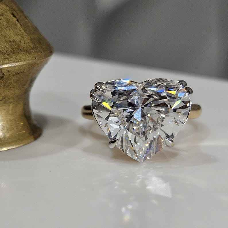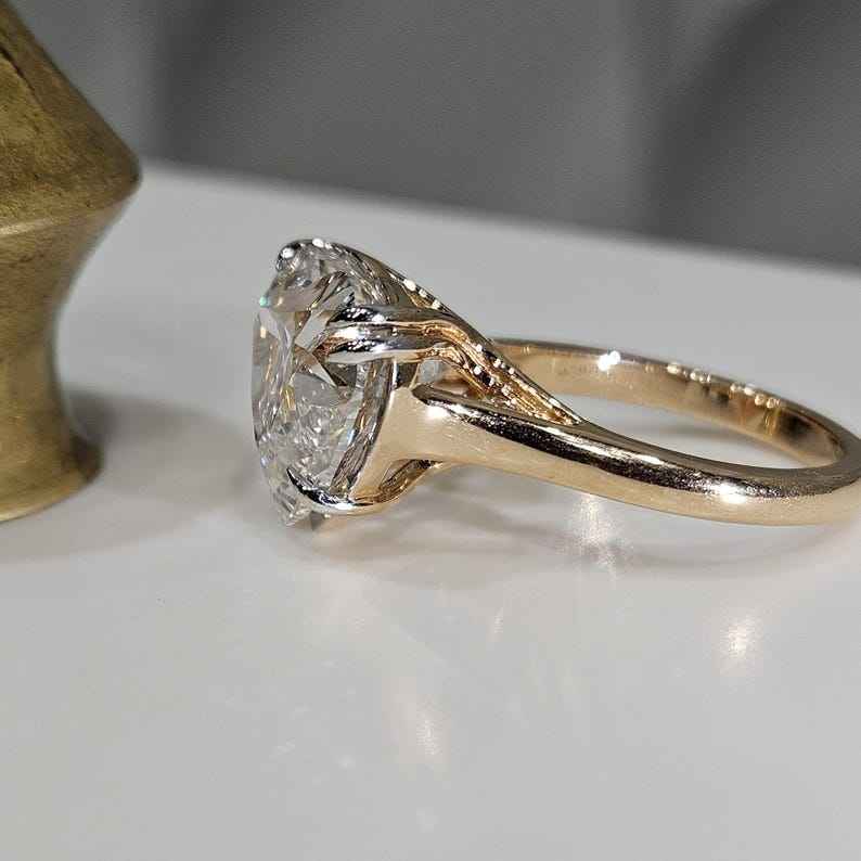 แหวนเพชรทรงหัวใจ 3.01 กะรัต ผลิตในห้องปฏิบัติการ สำหรับผู้หญิง แหวนแต่งงานทองคำแท้ 14K ดีไซน์โรแมนติกสำหรับคู่รัก