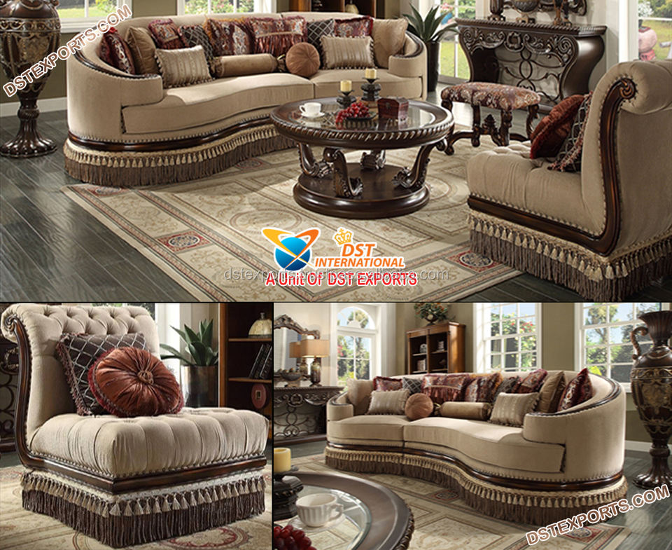 ชุดโซฟาห้องนั่งเล่นสุดหรู สีทอง ชุดโซฟาไม้แกะสลักสไตล์มหาราชา สีทองโบราณ เฟอร์นิเจอร์ห้องนั่งเล่นสุดหรู