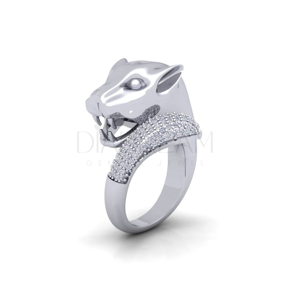 แหวนเงินแท้สำหรับผู้ชายแหวนเพชรฮิปฮอปโมอิสซาไนต์925พิเศษของเสือดำดีไซน์โบราณ