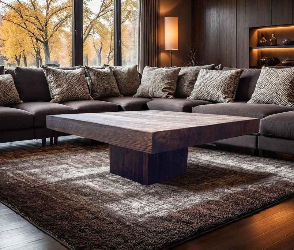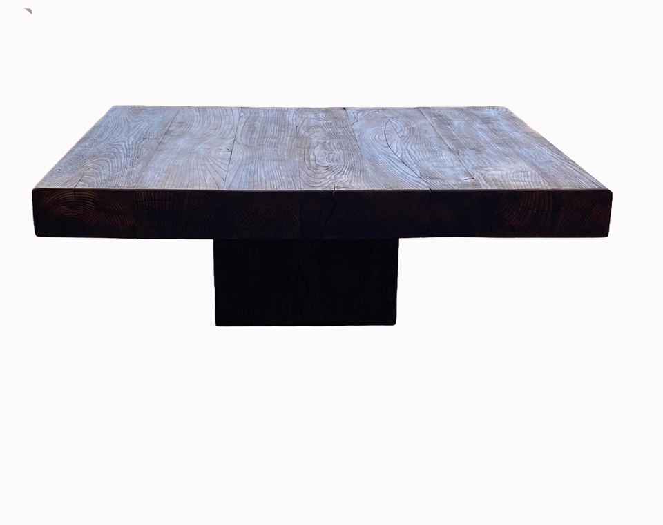โต๊ะกาแฟไม้เนื้อแข็งสไตล์โมเดิร์นรัสติกสุดพิเศษ พร้อมพื้นผิวไม้ขนาดใหญ่และโครงสร้างฐานเดี่ยวที่แข็งแรง สำหรับบ้านหรู