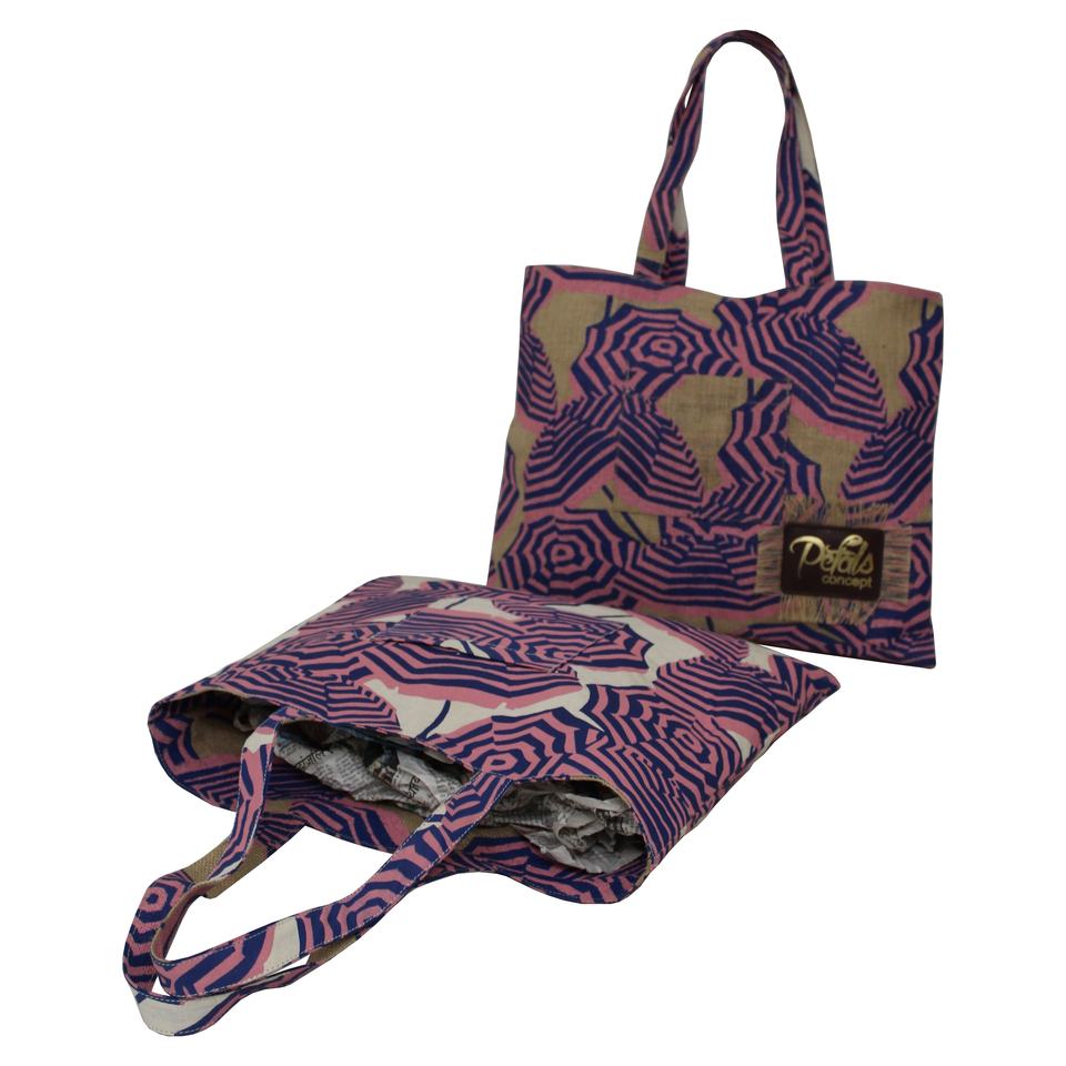 กระเป๋าผ้าฝ้ายปอกระเจาพิมพ์ร่มหลากสีพิเศษเป็นมิตรกับสิ่งแวดล้อมใช้ซ้ำได้ของขวัญแฟชั่นสองด้านสำหรับผู้ชายผู้หญิง