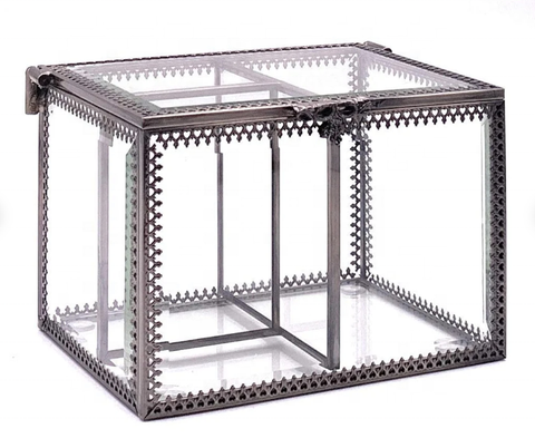 กล่องเครื่องประดับแก้วกรอบโลหะแฮนด์เมดหลายลิ้นชักสุดพิเศษกล่องเครื่องประดับ/อุปกรณ์แต่งหน้ากระจกสีทองสำหรับตกแต่งบ้าน