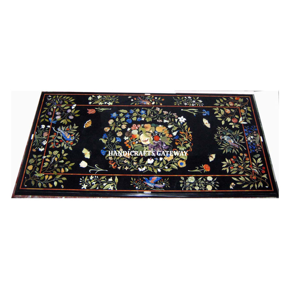 โต๊ะรับประทานอาหารทรงสี่เหลี่ยมผืนผ้าลายดอกไม้ฝังหินอ่อนสีดำดีไซน์สวยดูน่าดึงดูด