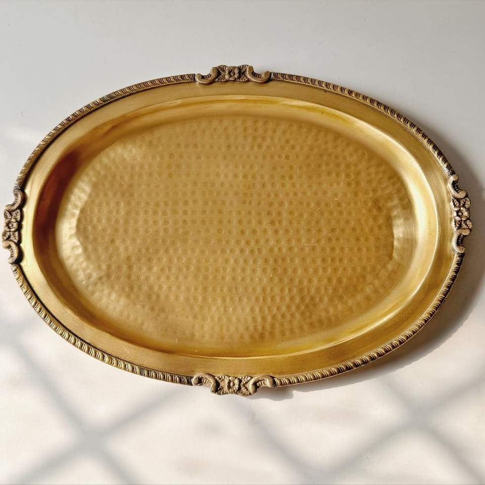 ถาดทองเหลืองรูปวงรีสุดหรูหราเคลือบทองคำสำหรับตกแต่งบ้านอย่างมีระดับและใช้สำหรับเสิร์ฟในงานจัดเลี้ยงโรงแรมร้านอาหาร