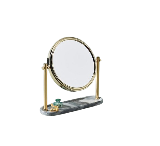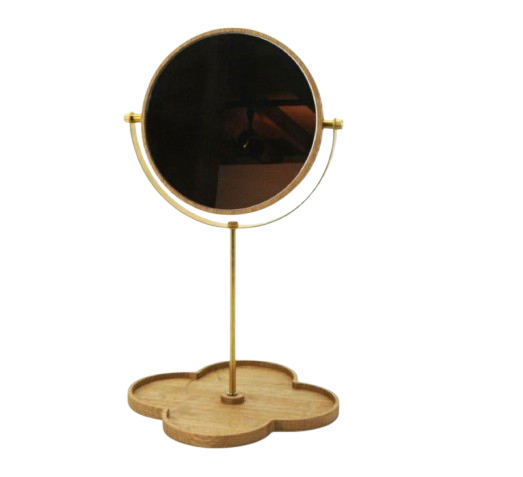 กระจกแต่งหน้าแต่งหน้าแต่งหน้ารูปไข่สุดพิเศษโต๊ะกระจกสีชมพูเคลือบตั้งโต๊ะพร้อมถาดกระจกแต่งหน้าเดสก์ท็อปมีสไตล์