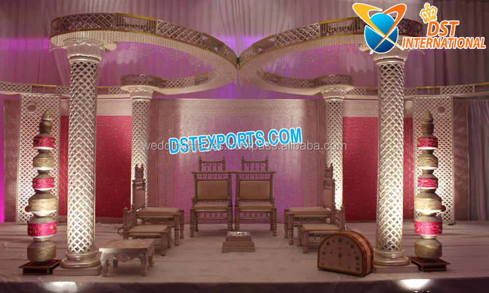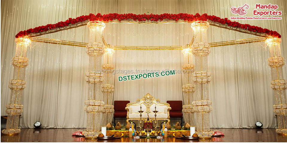 มณฑปแต่งงานคริสตัลหกเสาแบบพกพา ดีไซน์ทันสมัย สวยงาม สำหรับงานแต่งงานแบบอินเดีย ด้วยเทคโนโลยีไฟเบอร์คริสตัลล่าสุดจากสหรัฐอเมริกา