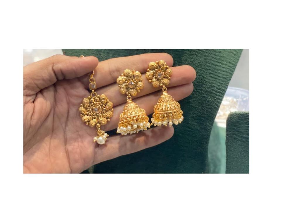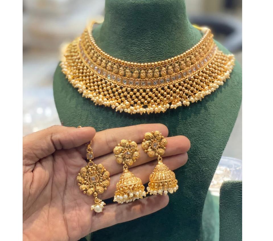 ชุดสร้อยคอทองเหลืองชุบทองคุณภาพพรีเมียมสุดหรู พร้อมต่างหูและติกก้า เหมาะสำหรับงานแต่งงาน งานปาร์ตี้ และงานเทศกาล สำหรับผู้หญิง