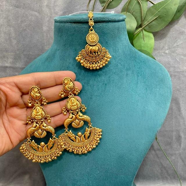 ต่างหูและติ๊กกะชุดแต่งงานสำหรับผู้หญิง ดีไซน์แบบดั้งเดิม ชุบทองคุณภาพพรีเมียม พร้อมเคลือบผิวแบบโบราณ