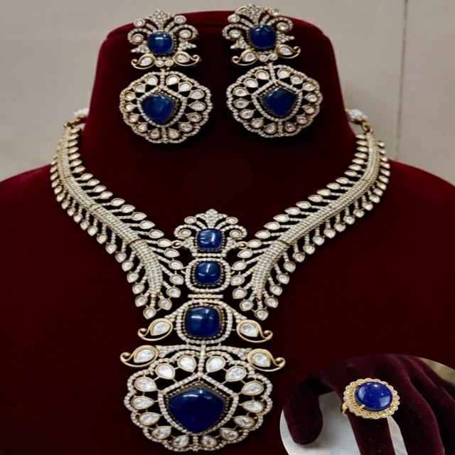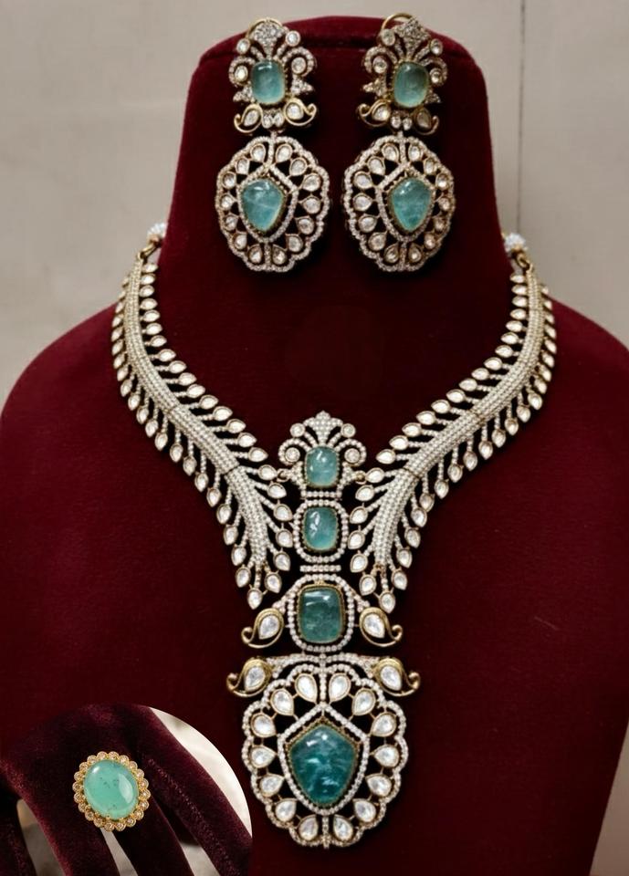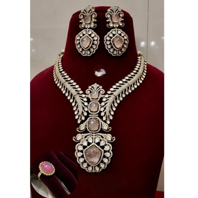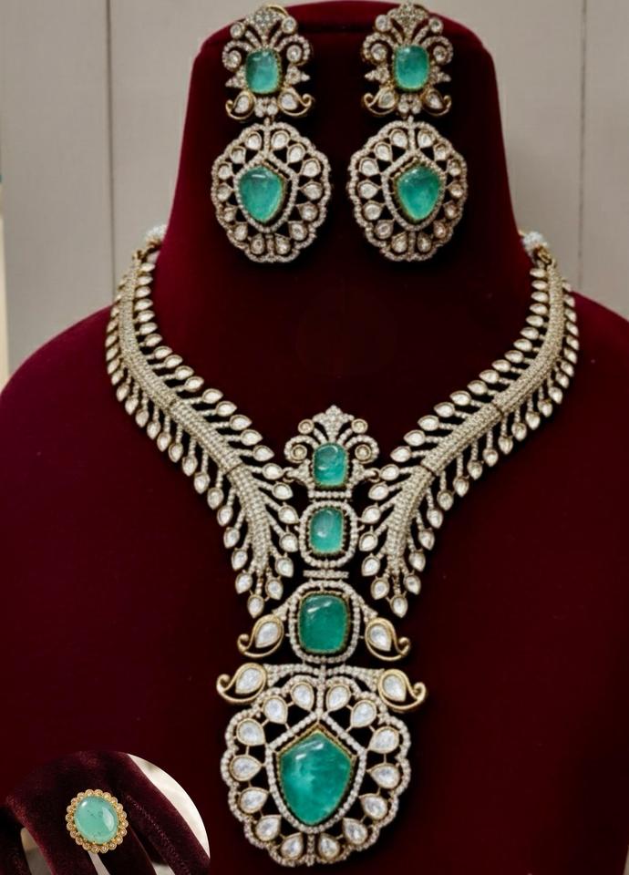สร้อยคอชุบทองคุณภาพพรีเมียมสุดพิเศษ ประดับด้วยโมอิสซาไนต์แท้แบบดับเบิ้ล พร้อมต่างหูและชุดแหวนดับเบิ้ลปรับขนาดได้