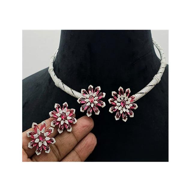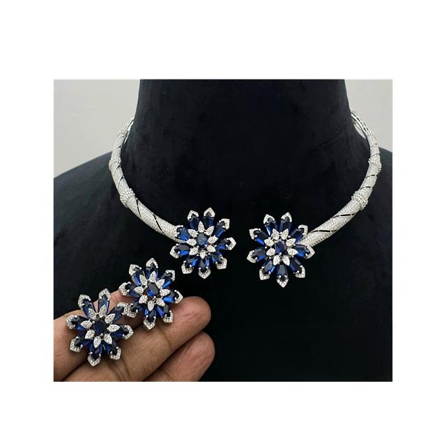 ชุดสร้อยคอและต่างหูดีไซน์เนอร์ประดับเพชรซิคอนสีขาวคุณภาพพรีเมียมสุดพิเศษ สำหรับงานปาร์ตี้ งานครบรอบ งานหมั้น และงานแต่งงาน
