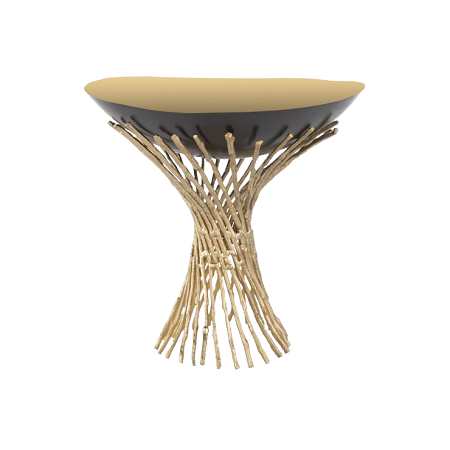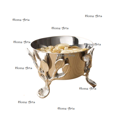 ชามขนมหวานสแตนเลสทรงกลมขาตั้งรูปใบไม้ ขนาดกลาง สำหรับเสิร์ฟขนมหวานและผลไม้อบแห้ง โดยโฮมอาร์ตส์