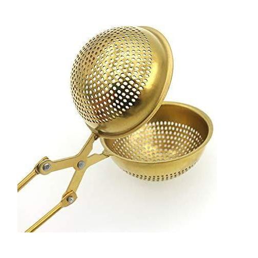 ที่กรองชาทองเหลืองคุณภาพสูงแบบตาข่ายละเอียด พร้อมด้ามจับกันลื่น สำหรับชาใบหลวม เครื่องเทศ และสมุนไพร