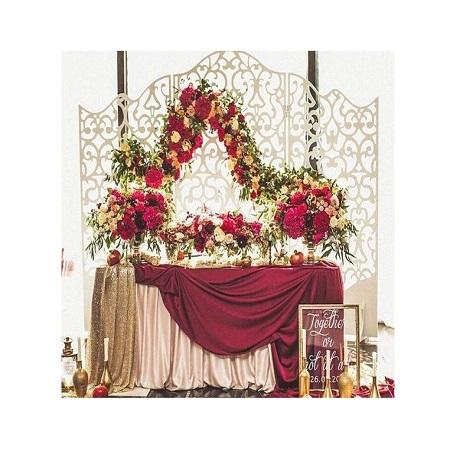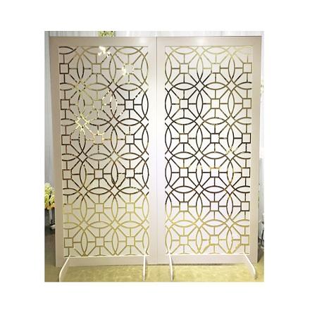 ฉากหลังงานแต่งงานสีขาวเหล็กคุณภาพสูงระดับพรีเมียม พร้อมโลโก้สั่งทำพิเศษในราคาสุดคุ้ม