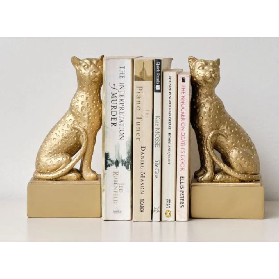 ที่กั้นหนังสือเสือดาวโลหะสีทองแบบพิเศษคุณภาพสูงที่กั้นหนังสือดีไซน์เนอร์ทันสมัยโต๊ะโรงเรียนสำหรับตกแต่งที่กั้นหนังสือ