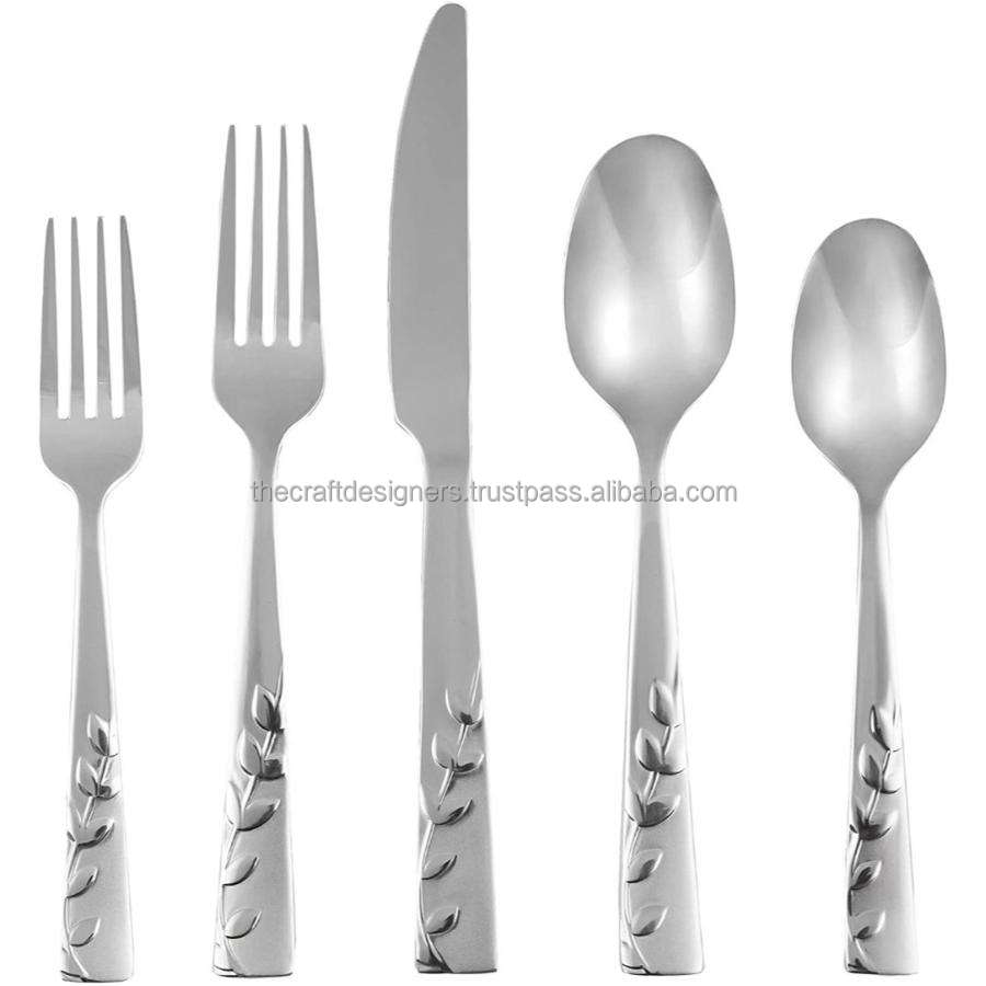 ชุดเครื่องเงินโลหะแบบใช้ซ้ำได้ชุดช้อนส้อมเกรดอาหารทำจากสเตนเลสสตีลสีเงินใช้ซ้ำได้โลโก้ตามต้องการ