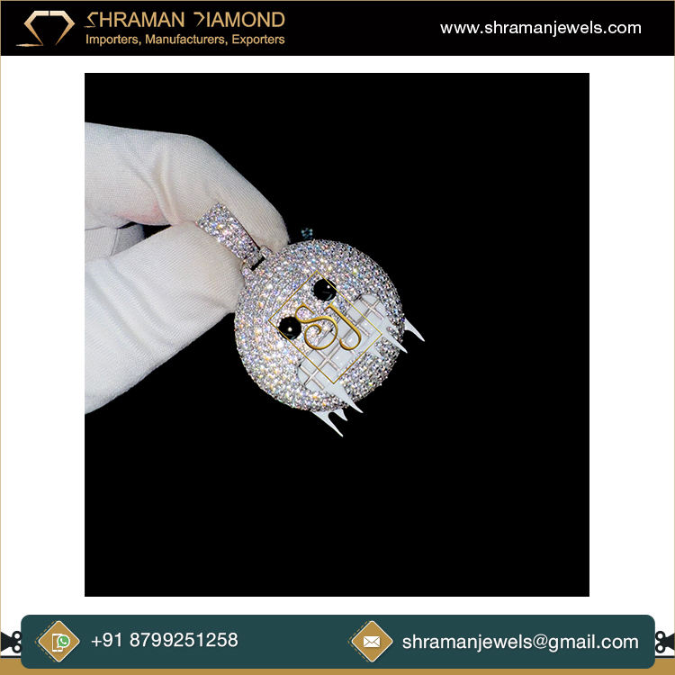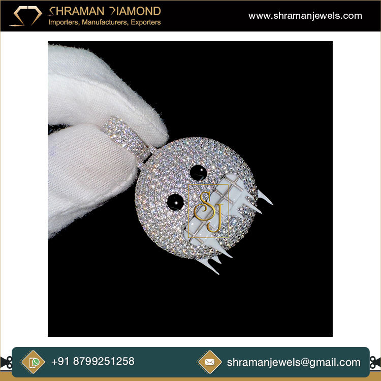 จี้รูปหน้ายิ้มเย็นดีไซน์แบบห้อยลงมาจากตาสีดำเพชรเพชรโมอิสเจิดจิวเวลรี่แบบฮิปฮอปออกแบบได้ตามต้องการเครื่องประดับสร้อยคอชั้นดี