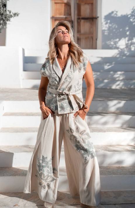 เสื้อคลุมผู้หญิงปักลายดอกไม้พร้อมเข็มขัดสไตล์รีสอร์ทฤดูร้อนสุดพิเศษ